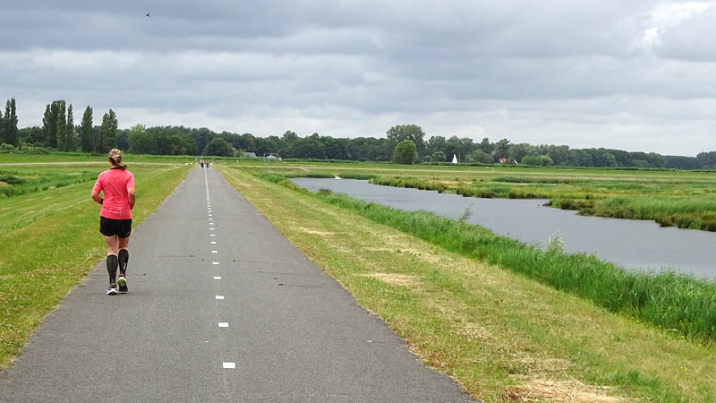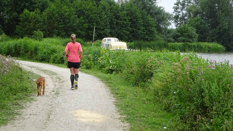We hobbelen RWR terug naar de start, maken nog een lusje naar de sluisjes en de kano verhuur en lopen daarna terug naar de auto. Ik heb er wel genoeg van en vanaf morgen wil ik wat off road in Garderen lopen. Daarna gauw verder met serieuze rondjes continu en op MAF!