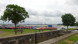 Bij de sluisjes maak ik nog een foto van S. en een vreselijke selfie