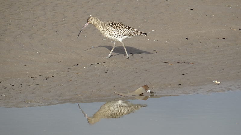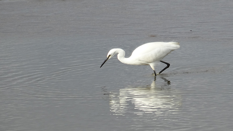 Ik zie meteen al dat er nog best wat vogels zijn die aan het fourageren zijn. Maar in het voorbij rijden, zie ik ineens een kleine zilverreiger. Dat is wel heel gaaf en ik keer om voor een foto.