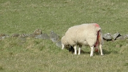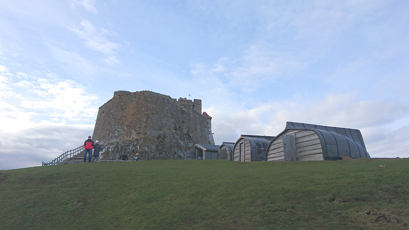 Het is nog best een stukje naar het castle en even verderop zie ik een ouder lammetje drinken bij de moeder. Leuk gezicht en ik verheug me al op de rest van het eiland want er is altijd wel wat te zien.