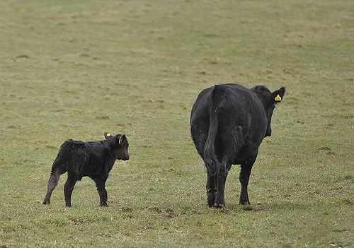 Als ik start, zie ik de zwarte moeder koe met haar piepkleine kalfje in de wei liggen. Ik heb nog steeds geen foto van het kleine ding!