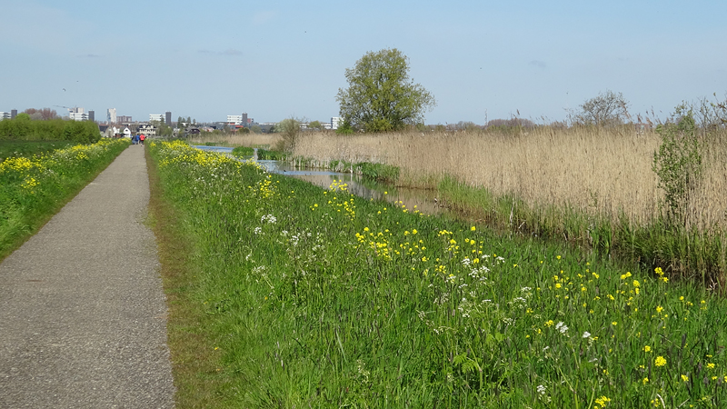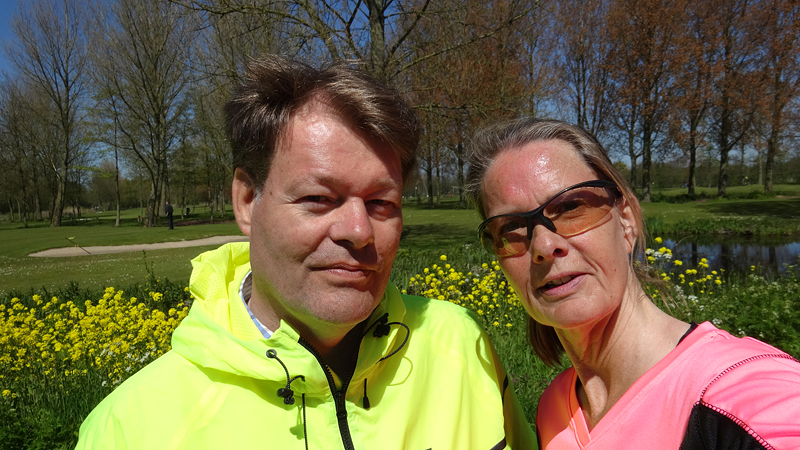 Het is heerlijk weer en we genieten wel van ons rondje. Ik loop vrij langzaam maar ik heb het enorm warm gekregen van die zware rugzakken en ik ben ook veel te warm gekleed natuurlijk. Maar dat mag de pret niet drukken.