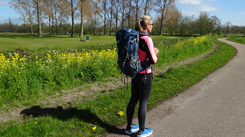 Stom genoeg kom ik pas laat tot de ontdekking dat ik de OMM niet goed gepakt heb. Dat maakt bij de OMM meteen uit omdat het rugpand niks voorstelt en je dus alles voelt zoals het erin zit. Ik had deze keer twee rollen vertikaal erin gedaan en dat voelde dus niet echt prettig. Na enkele kilometers lopen we dus weer terug naar de parkeerplaats en leggen de twee rugzakken in de auto. Eerst maar weer even lopen zonder zakken nu!