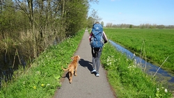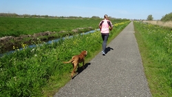 We slingeren wat door het natuurgebied en sprokkelen zo de kilometers bij elkaar. Woef doet het gelukkig prima ondanks het warme weer. Na 17 km staan we weer bij de auto. Genoeg voor vandaag! Vanmiddag rij ik richting Belgie om daar te slapen vanwege de operatie van mijn vader morgen. Misschien dat ik in Aken ook nog wat kan lopen tussendoor.