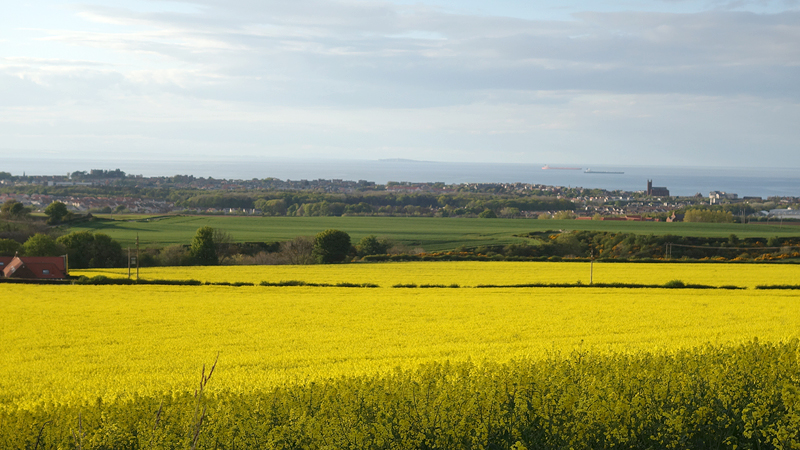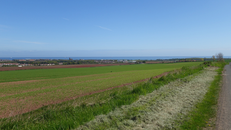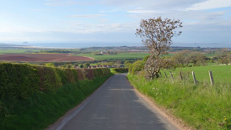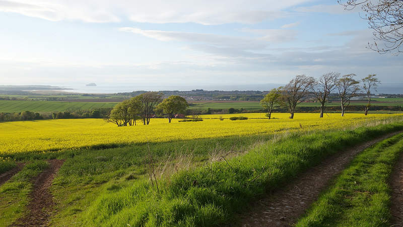 Ik hobbel rustig door en geniet van het uitzicht op Bass Rock in de verte. Zouden er ook dit jaar weer vaan Gannets broeden en schreeuwen daar op die rots? Eind mei gaan we het misschien weer zien, horen en ruiken als we er met de snelle boot langs varen. Nu al zin in en ik hoop op droog weer die dag!!