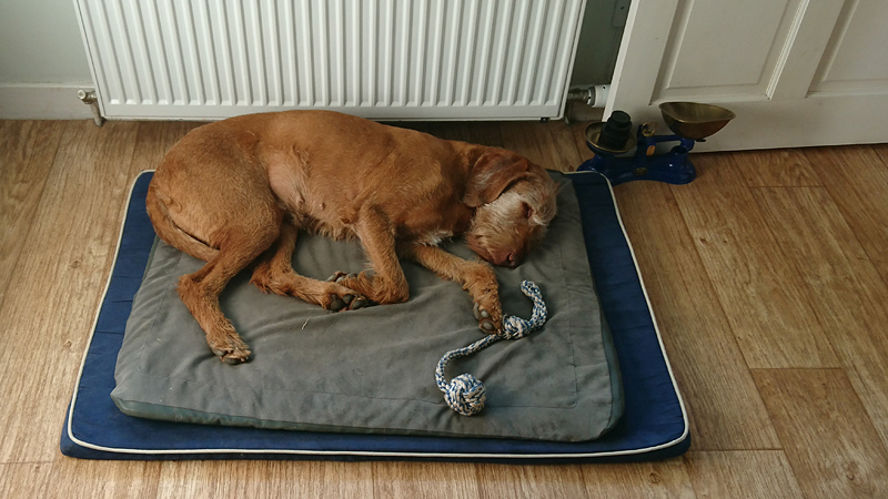 Vannacht goed geslapen en toen ik vanmorgen vroeg naar het toilet sloop, lag woefje nog heerlijk te ronken. Moe van alle indrukken en ons loopje van gisterenavond denk ik. Kan ik mooi nog even blijven dommelen dus. Uiteindelijk sta ik op, laat woefje een plasje doen op het gras en maak me rustig klaar voor een kort rondje. Het is prachtig weer dus daar moet ik meteen gebruik van maken natuurlijk!