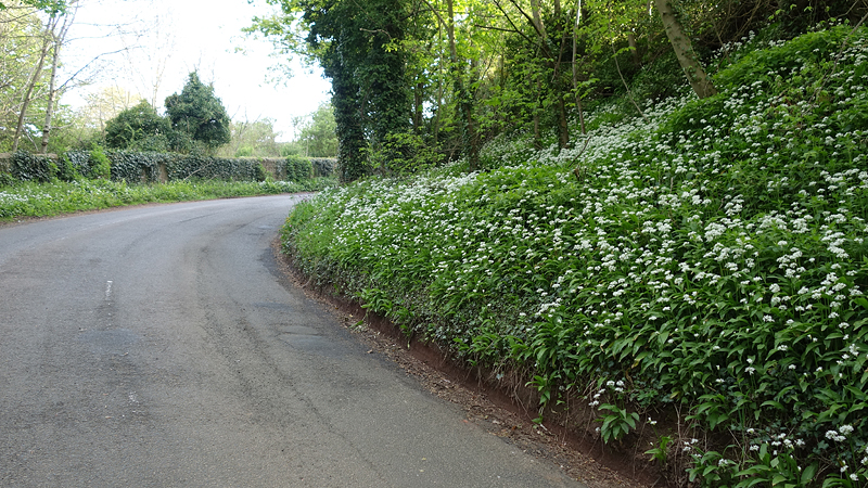 Ik ontdek nog een nieuw pad, dat ik later deze week wil doen. Daarna hobbel ik het laatste stukje rustig naar beneden en sla bij Canongate linksaf. Daar ploeterde ik met de fiets tegenop vanmiddag met mijn boodschapjes! De witte bloemetjes die zo lekker ruiken, lijken wel al wat meer uit te zijn dan vanmiddag. Misschien door het zonnetje.