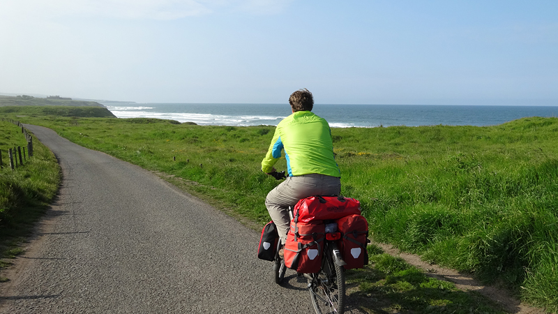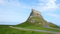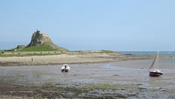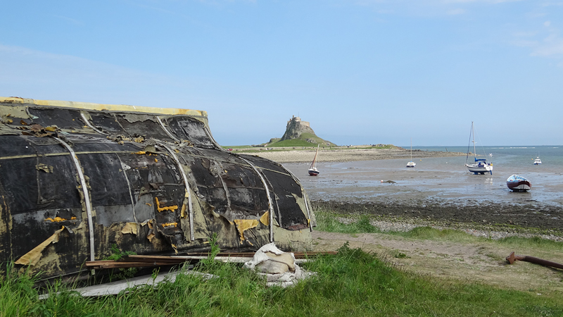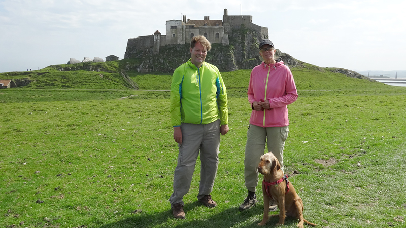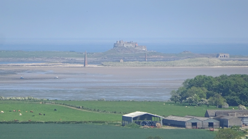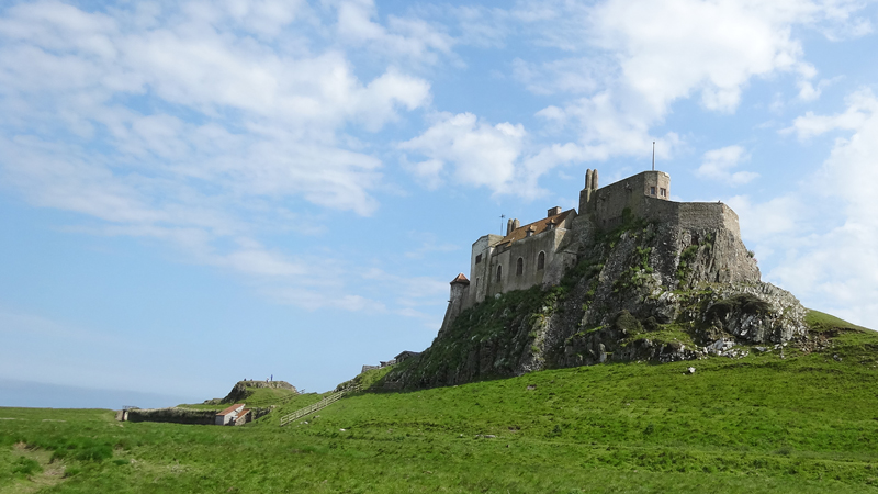 Als we rechtsaf slaan, rijden we op een hele rustige weg met een fantastisch uitzicht. Met dit mooie heldere weer is het echt schitterend. We zien al het castle op Holy Island in de verte liggen. Daar gaan we heen!