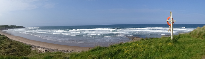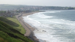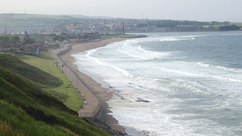 We komen bij Spittal en zien de mooie promenade langs de zee in de diepte liggen. Prachtig plekje.