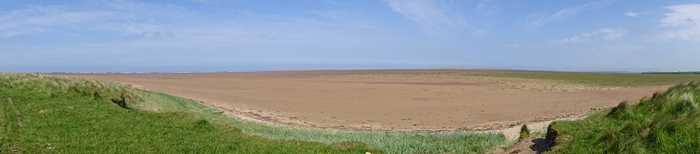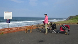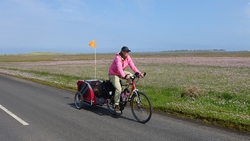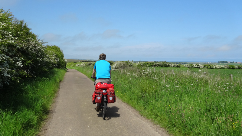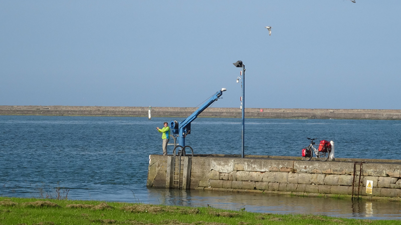 We komen de dame op de racefiets weer tegen die ons vraagt of ze nou straks alsnog de A1 moet oversteken. Ja, wel oversteken maar het stukje langs de A1 zal misschien 100 mtr zijn. We kijken op haar kaart en op onze kaart en uiteindelijk besluit ze de 1 route ook maar gewoon te volgen richting Holy Island (ook haar bestemming). Ik krijg de indruk dat wij onze route beter voorbereid hebben want die hele route 1 lijkt een nieuwtje voor haar.