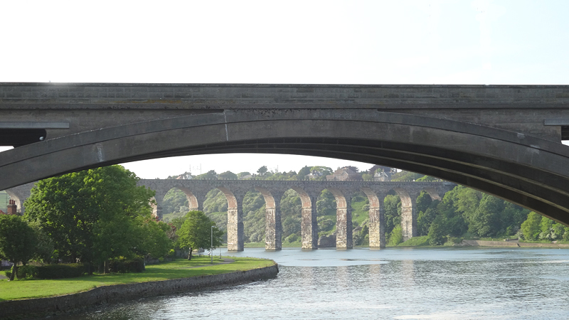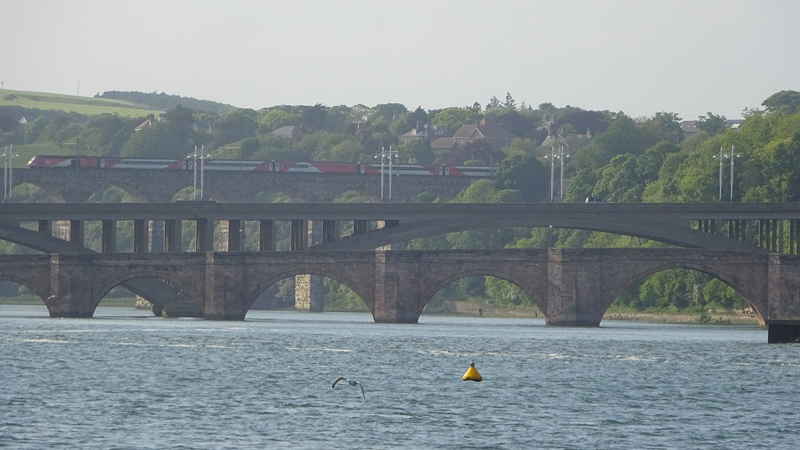 Na Spittal zien we de drie bruggen van Berwick. Helaas hebben we tegenlicht van het avondzonnetje en kunnen we geen mooie foto’s maken.