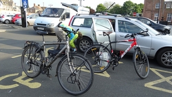 Na de klim gaat het snel en zo fietsen we door Berwick en zijn we al bijna bij het station. Wat een gek idee eigenlijk en wat was het weer leuk. Na bijna 120 km staan we weer bij de auto die rustig in het zonnetje staat te blikkeren op de parkeerplaats.