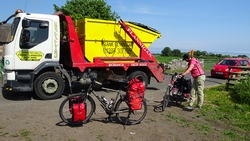 Dan kunnen we eindelijk weer op de fiets stappen voor ons laatste stukje. We een gek idee eigenlijk dat we er nu bijna zijn en toch ook wel weer jammer. Het geeft toch een gevoel van vrijheid ook, dit soort gekke avonturen.