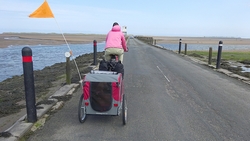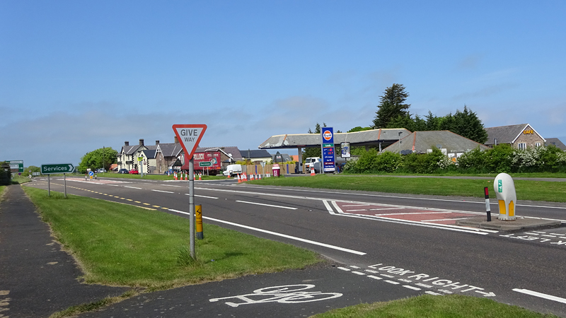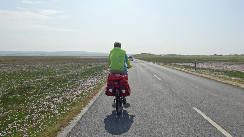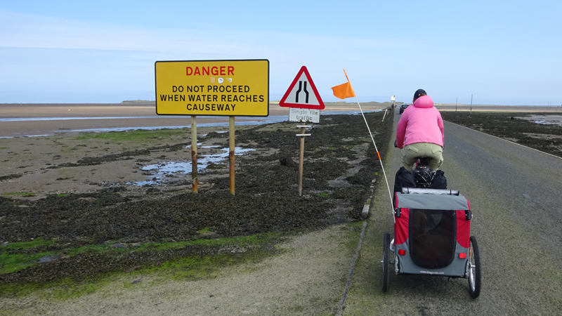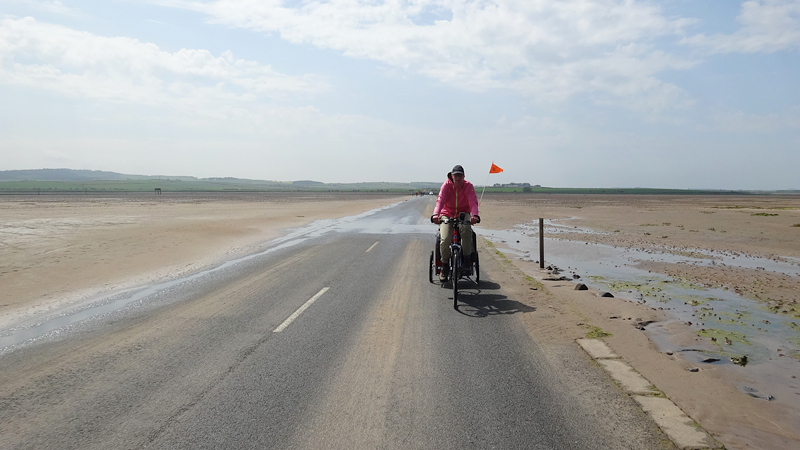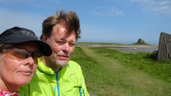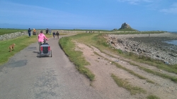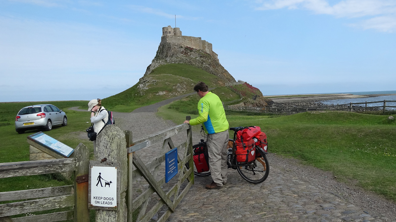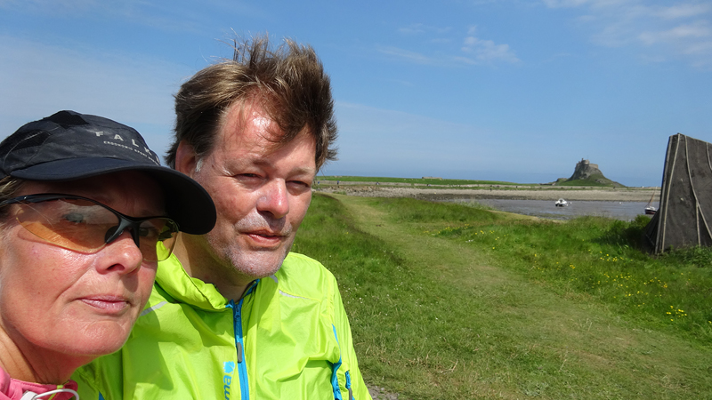 Al snel zijn we bij de A1 maar daar blijk een keurige oplossing te zijn voor de fietsers. Oversteken met midden platform waar je kunt wachten eventueel en daarna parallel over de weg langs het bezinestation. Geen eng gedoe langs de A1 dus en al snel rijden we richting Holy Island. We boffen qua planning, want het is safe crossing tot 16.50 en we hebben dus tijd om het eiland te bezoeken met de fiets over de causeway.