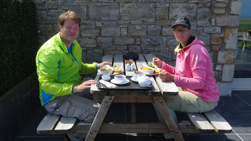 Het is nog steeds mooi weer overigens en we besluiten eerst een hapje te gaan eten bij Barn at Beal vlak voorat we de causeway op gaan rijden. Als we eerst Holy Island doen, moeten we immers weer terug naar Barn at Beal om weer op de route te komen en dat is niet handig.
