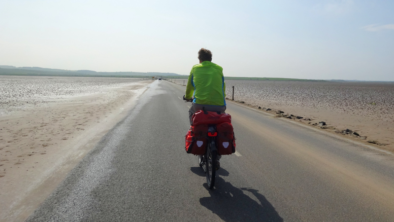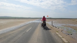Gelukkig gaat de terugreis over de causeway een stuk sneller met de wind nu in de rug. De weg blijkt ook een stukje te dalen nu, dus de heenweg was dubbel zwaar daarom. In no time zijn we weer aan de andere kant. Net na 16 uur zijn we alweer van het eiland af.