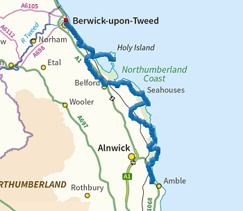 Na de betaling van 15 pond voor de twee tentjes gaan we op weg. Het is inderdaad al 11 uur als we rechtsaf slaan naar de weg en richting Belford rijden en daarna via Fenwick naar Holy Island, de attractie van de dag.
