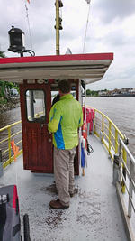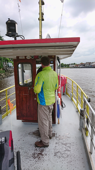 Het weer is redelijk goed alleen waait het behoorlijk als we vertrekken. Maar dat mag de pret niet drukken en al snel fietsen we richting het eerste pontje. We zijn keurig op tijd maar er komt niemand. Ik denk dat het niet de bedoeling is dat we alvast het pontje oprijden maar als we dat uiteindelijk toch doen, komt de schipper alsnog aanlopen. Hij ziet de mensen alleen als ze op de pont stappen blijkbaar maar hij doet (deze keer) niet moeilijk en vaart ons over voor 3,15 euro. Idioot veel voor dat kleine tripje.