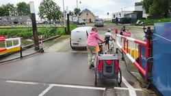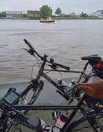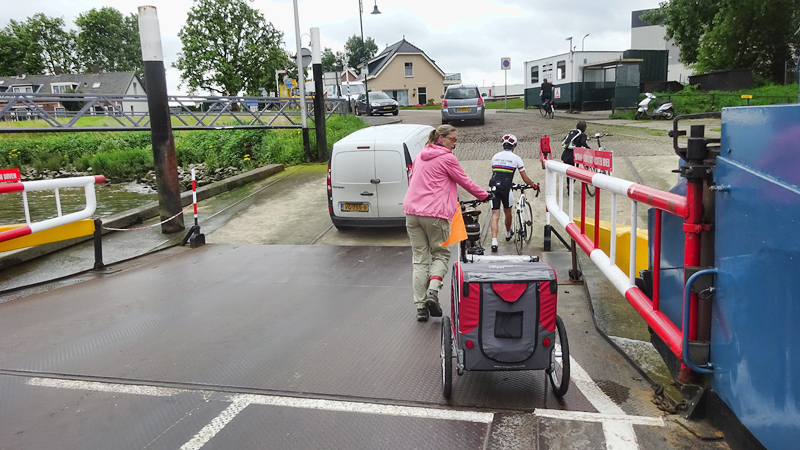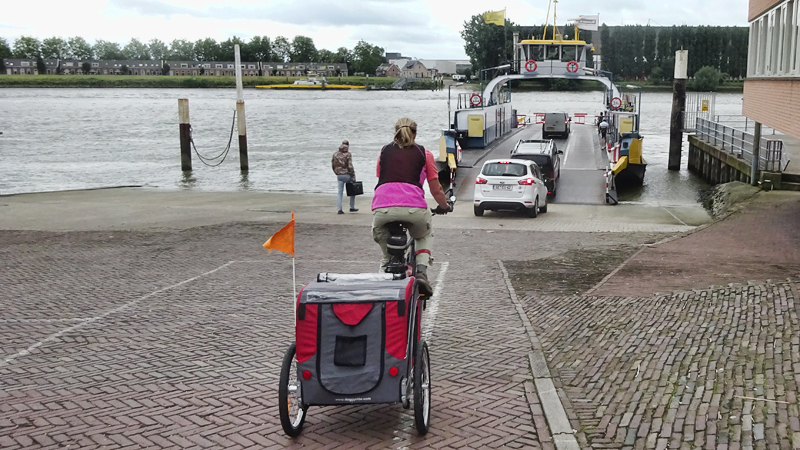 In het dorpje fietsen we even verkeerd maar we komen netjes bij de pont uit naar Lekkerkerk dus geen problemen. Die ligt aan onze kant dus we kunnen al vrij snel oprijden.