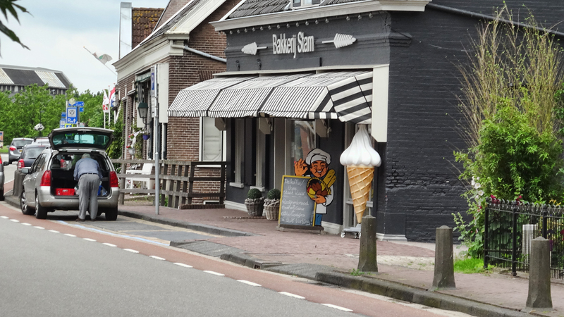 Hoe het ook zij, we rijden gelukkig weer en rijden nu terug naar huis. De navigatie doet het goed en we verdwalen niet. Gelukkig kiezen we uiteindelijk toch weer voor de route langs de molens zoals ik had getekend en niet over de dijk. Dat is leuk, want we zien de molens nu vanaf een hele andere kant en bovendien komen we langs een biologische kaasmakerij waar ze koe, schaap en geitenkaas verkopen. Dat willen we wel!