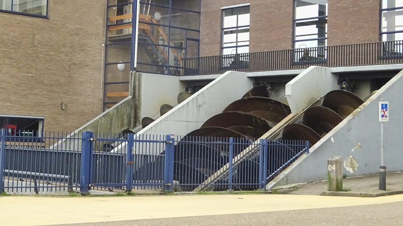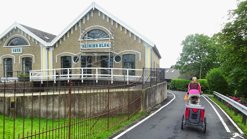 Als je het fietspad richting Kinderdijk opdraait, kom je eerst langs een groot gemaal. Op het moment dat we erlangs fietsen, draait het gemaal. Wel leuk om te zien!