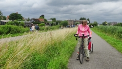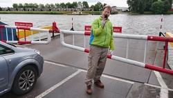 We varen weer over met de pont en fietsen weer terug richting Breeka. Helaas gaat het regenen en niet een miezertje maar een echte bui. Gelukkig hoeven we de kar niet af te dekken met de hoes dus dat valt mee, maar wij zijn doornat. We slaan rechtsaf bij Breeka en rijden over de Zijdeweg weer terug naar het pontje over de IJssel. Gelukkig heeft alles inmiddels zo lang geduurd dat het na 16 uur is en het pontje continu vaart. Helaas moeten we toch redelijk lang wachten totdat de pont eindelijk onze kant opvaart maar we staan wel droog.