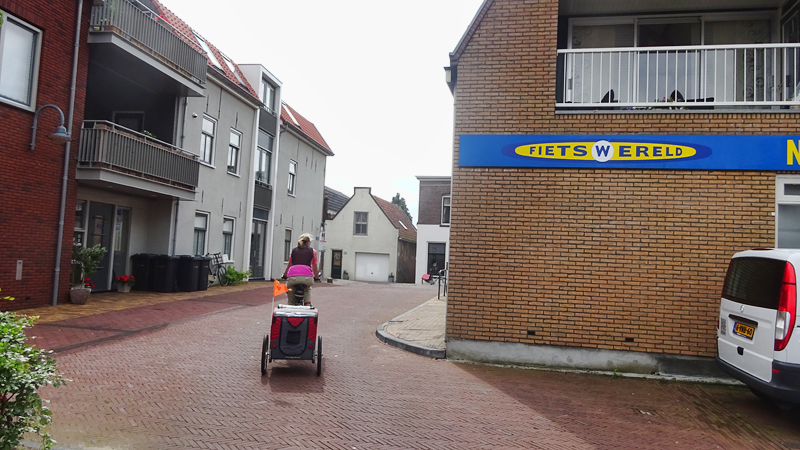 Na 2 uur en 15 minuten gaan we dan eindelijk weer op pad richting huis. Beetje raar gevoel hebben we hier aan overgehouden. Het asje kostte 10 euro maar dit is toch zeker garantie? Ik ga Santos eens mailen wat ze hiervan vinden. Op de terugweg bespreken we wat hier de oorzaak van kan zijn geweest. Ik denk dat E. de klem niet goed heeft vastgezet waardoor het geval is losgeschoten. Door de klap en de kracht zal het schroefdraad gemold zijn, maar toch… het draaide al niet lekker toen ik wilde vastzetten dus wat is er nou precies gebeurd? Het zal wel een combinatie van factoren zijn maar feit blijft dat we dit met mijn speelgoed fietsje niet gehad hebben, ook al trilde de doggyride daar steeds los en hebben we dat elke keer met een tang weer vastgedraaid. Heel merkwaardig. Toch eens kijken hoe andere fietskarren dan vast zitten aan de fiets.