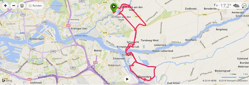 Het begin van de route gaat langs bekend terrein. We fietsten hier al eerder en we lopen hier ook wel eens. Gewoon een rechte weg door natuurgebied. Wel mooi overigens. We laten wafje even uit de kar voordat we langs Breeka fietsen zodat ze even kan plassen. Daarna fietsen we weer door en gaan bij Breeka rechtdoor richting Krimpen ad Lek. Hier fietsten we nog niet eerder maar hebben we wel eens gevaren met de kano. Grappig om dat nu vanaf de weg te zien. Kano is veel mooier!
