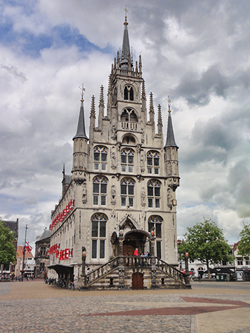 Op de heenweg klopte dat ook wel, want dat betekende alleen langs de dijk blijven rijden. Lekker deels met de wind mee dus dat zag er goed uit. Onderweg in Gouda even gevraagd waar het centrum was en ik was daar al snel. Vreemd om opeens midden in het centrum te staan met een fietsje aan de hand!