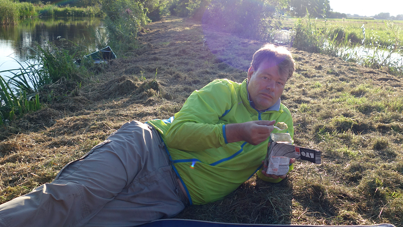 We wilden eigenlijk eerst richting Breeka voor een bitterballetje en dan weer terug maar we kiezen nu voor het mooie stuk naar kanopunt 13 en dan weer terug. We varen dus eerst oostwaarts. Deze keer gaan we een maaltijd maken en opeten op de kant in een weiland of bij de steiger.