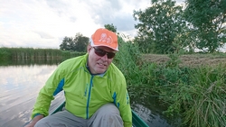 Je merkt goed dat de dagen alweer korter worden. Het licht is wel erg mooi overigens maar het wordt echt eerder donker. We varen pas om 20.15 weer weg bij steiger 13 en varen dus nu weer de 3.8 kilometer terug naar de auto. Dat gaat redelijk vlot en we varen langs de andere vaargeul terug. Er is niemand meer in het gebied. Hoewel het dus stil is op het geluid van vogels na, hebben we wel ‘last’ van vliegtuigen. Juist omdat het zo stil is, is het geluid van de vliegtuigen in de lucht eigenlijk heel irritant. Geen echte stilte, maar waar vind je dat ook nog in Nederland. Eigenlijk nergens meer en dat is ontzettend jammer. Mooi is het wel. Zo varen we langs een weiland waar een enorme troep ganzen zit in het avondzonnetje.