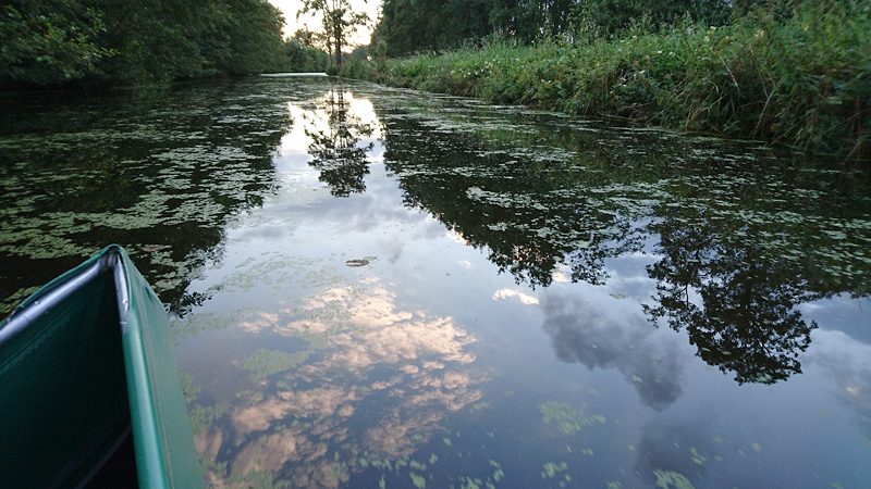 Het is heerlijk rustig. Geen hond op het water natuurlijk want de verhuur sluit al om 17 uur. Dat was vorig jaar ook de reden om een eigen kano aan te schaffen. Je bent niet gebonden aan tijden en plaatsen! Bovendien schrok ik me rot van de prijzen want volgende week gaan we met mijn zusje varen en de huurprijs voor de kano is maar liefst 29 euro. Ik snap dus weer helemaal waarom we ook alweer een eigen boot hebben.
