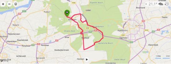 Vanmorgen zijn we naar Garderen gereden voor een loop en fietsrondje met overnachting in de tent. We hebben eerst 15 km gelopen en daarna hebben we de tent opgezet. Nu dus een stukje fietsen en daarvoor kozen we een korte route via radio Kootwijk. Ik had eerst een 52 km route gemaakt maar deze is een stukje korter en dat is ook prima.
