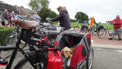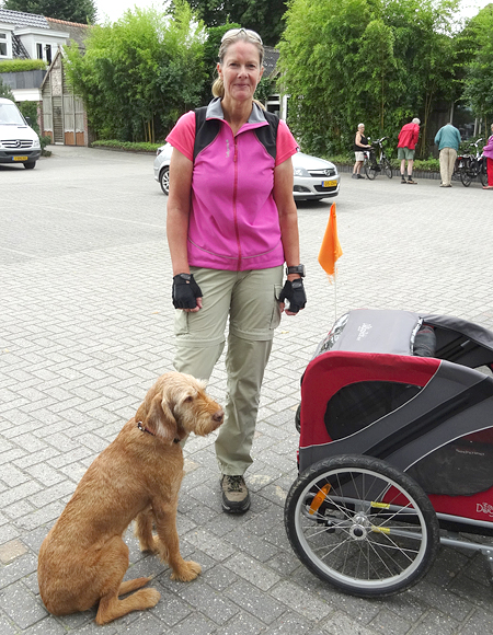 Rond 12.45 kom ik aan bij een controlepost waar iemand even een foto van ons maakt. Woefje is natuurlijk ook weer uit de kar.
