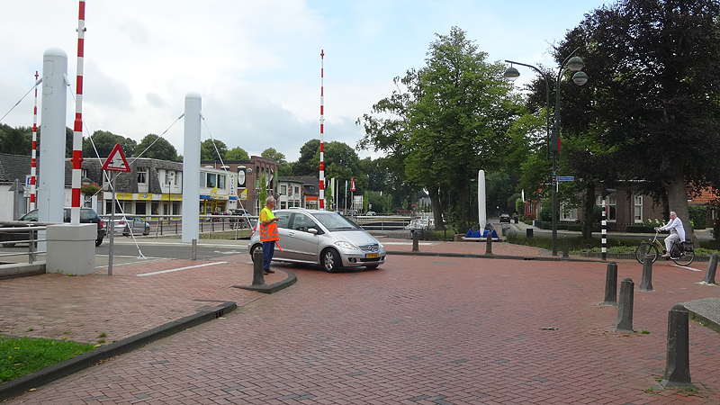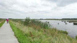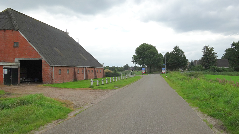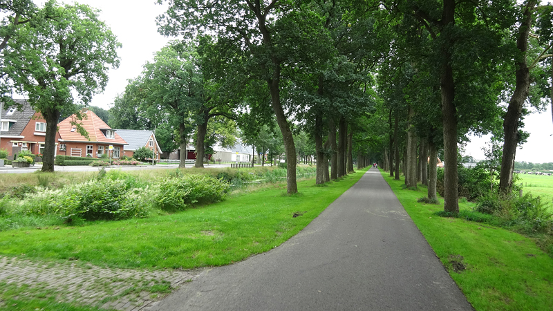 We slaan bij de hallen rechtsaf, gaan weer over de brug waar ik net vandaan kwam (en waar verkeersregelaars staan) en slaan weer linksaf langs de vaart. Ik ben op dat stukje enorm veel tijd en energie kwijt met inhalen van mensen. De helft is doof en de andere helft luistert gewoon niet. Uiteindelijk kom ik er wel langs en kan ik een beetje doorrijden. Overigens valt het met het tempo nog wel mee, want bijna iedereen rijdt op een elektrische fiets en dat gaat nog best hard. Maar ik ben toch sneller en ik wil erlangs…. Maar het lukt en daarna rijd ik een stukje ‘alleen’. Eerst langs de Opsterlandse Compagnonsvaart richting Oosterwolde.