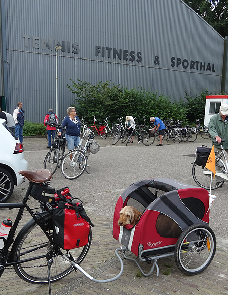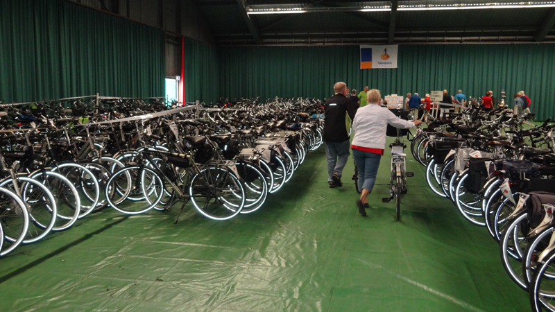Even na 14.30 rij ik Appelscha alweer binnen en even later ben ik bij de sporthal. Dat is toch niet verkeerd eigenlijk en het is nog steeds redelijk vroeg. Inmiddels staan er al best veel fietsen in de sporthal. Er wordt zelfs op de fietsen gepast!