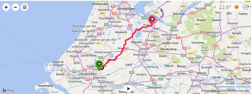 Ondertussen heeft S. zijn bril en is hij naar een winkel gegaan. Daar zal ik hem ook gaan ontmoeten en zo doe ik het ook. Ik rijd niet meer langs de heide via een omweg naar Laren centrum maar sla bij La Place rechtsaf en rijd een stukje zoals ik vroeger ook fietste in mijn schooltijd. Grappig om weer eens te zien. In no time ben ik daarna bij S. en na 72 km op de teller klok ik af. Mijn rijtijd was maar iets langer dan de geplande 3 uur maar door het wachten bij de bruggetjes en de pont komt daar dus gewoon 23 minuten bij. Ongelooflijk zonde van de tijd. Maar het is niet anders. Inmiddels staat er binnen 3 weken alweer 250 km op het fietsje.