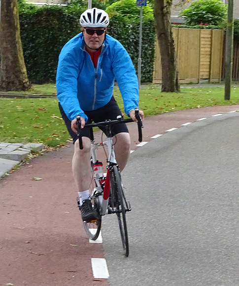 Na 17 km sta ik weer bij S. voor de deur om even te vragen hoe het allemaal voelt nu. Mogelijkheden voor dit probleem zijn o.a. een te hoog zadel, te strakke schoenen of te ver naar voren zitten. We zijn qua zithouding dus nog niet helemaal klaar voor S.
