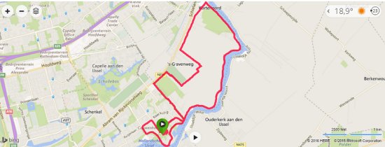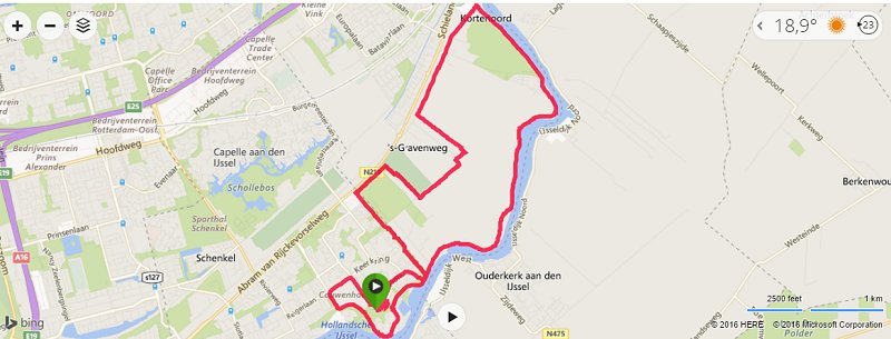 We doen rustig aan en ik kies voor het rondje over de dijk zoals ik ook de eerste rondjes deed. Ik rijd bewust de andere richting op omdat ik denk dat we dan tegenwind hebben op de dijk. Dat klinkt vreemd, maar windje mee op de dijk nodigt wel erg uit tot keihard rijden en dat is voor de eerste rit niet zo handig denk ik.