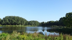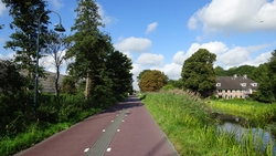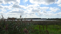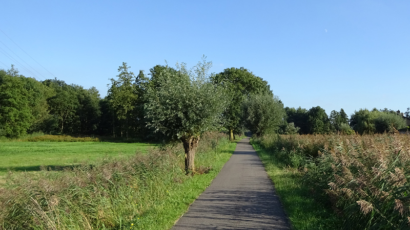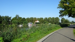 Als ik bijna bij de Starrevaart ben, zie ik dat ik echt veel te vroeg ben. Ik besluit dus linksaf te slaan en langs de plas te gaan rijden. Helaas zie ik weinig van de plas omdat het riet heel hoog is. De vogelkijkhut laat ik links liggen omdat ik woef bij me heb en ook de fiets niet zomaar uit het zicht wil laten staan. Ik heb wel een verrekijker bij me maar ik rijd toch door. Even later hoor ik grappig genoeg een ijsvogeltje dichtbij vliegen. Ik zie niets maar ik weet dat hij er is. Dat blijft leuk. De route is mooi maar ik zie op de navigatie dat deze omweg 45 minuten nog zal zijn en dat vind ik te lang. Als ik ineens een pad zie rechtsaf richting de Vliet, besluit ik dat te nemen zodat ik straks langs de Vliet weer naar de brug over de Vliet kan rijden en vanaf daar direct naar mijn zus kan rijden. De vorige keer was die brug nog afgesloten en moest ik helemaal omrijden naar het centrum van Leidschendam.