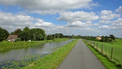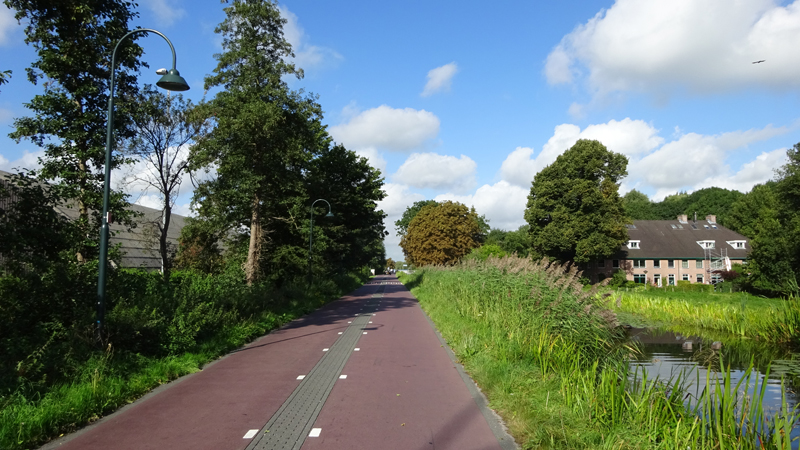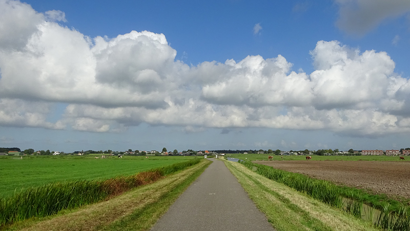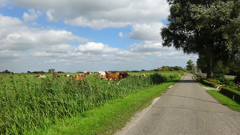 Daarna sla ik linksaf richting Stompwijk. Dat rijdt even niet zo lekker over de klinkers maar het is prima te doen met hoge cadans. Al snel ben ik weer de drukte uit en rijd door de velden met koeien. Heel rustig hier.