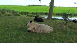 Ik ben al bijna bij Stompwijk en rijd langs de velden met de koeien en het gemaaltje. Het is heel rustig en vredig hier en ik geniet van mijn route. In de weilanden staan heel wat zilverreigers en dat is leuk om naar te kijken.