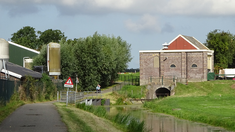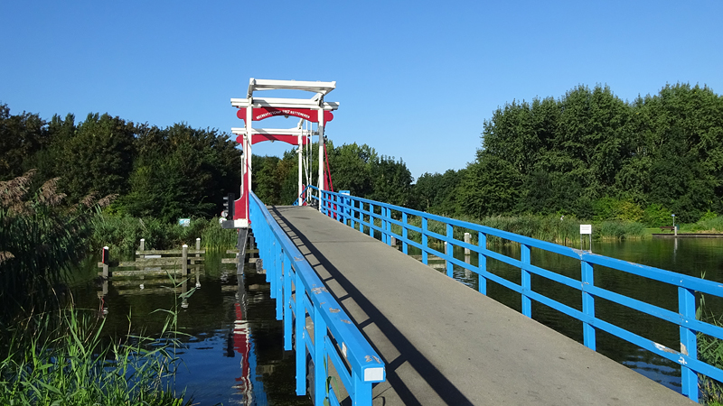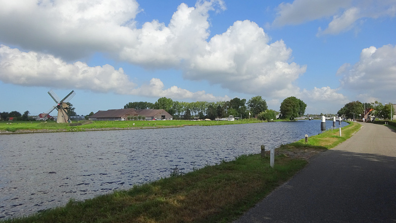 Even verderop voor de brug zie ik een molentje en ik zie al mensen over de brug fietsen. Daar kan ik dus overheen en dat is fijn.
