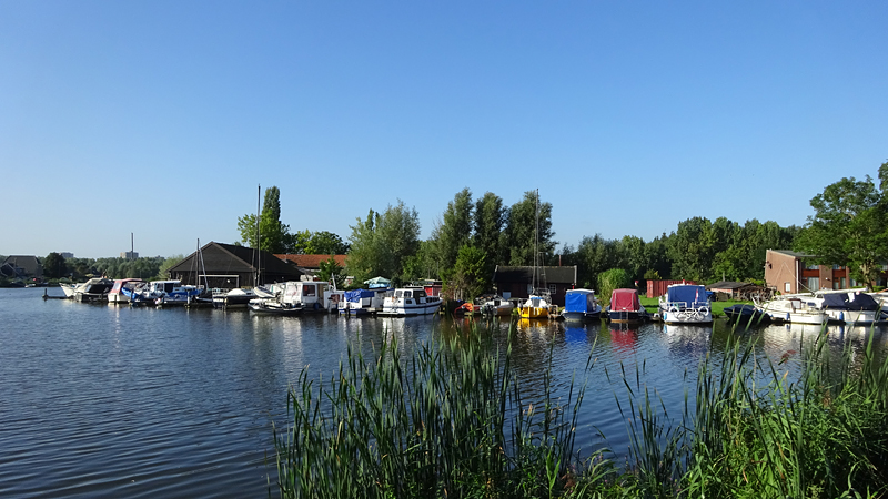 Links van me zie ik de molen van Leidschendam maar ik ga ervan uit dat de brug gewoon bruikbaar is en fiets langs de Vliet. Veel bootjes nog op het water! Erg mooi en ik geniet nog steeds van de route. Wat was de heenweg eigenlijk dichtbij!