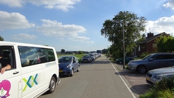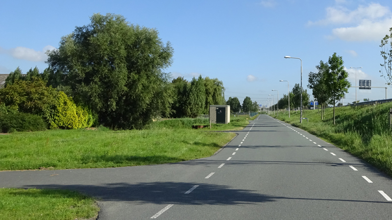 Ik rijd ineens Moerkapelle in. Ik sla linksaf en alles staat muurvast daar. Kilometers lang rijd ik langs stilstaande auto’s. Mensen zijn al uit de auto en zitten in de berm of roken een sigaretje. Kennelijk loopt er ergens iets vast want niemand kan een kant op. Ik kan rustig rijden want er kan dus ook niemand vanaf de andere kant komen. Aan het einde van de file is het wel vervelend rijden omdat auto’s proberen om te draaien en dus geen boodschap hebben aan mij als fietser. Irritant.