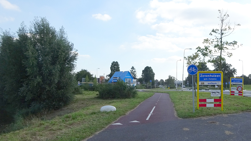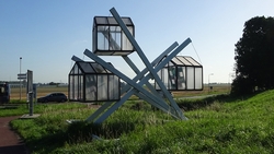 Daarna linksaf over de Merenweg waar ik nog nooit eerder geweest ben. Ik zal op deze manier nu naar Bleiswijk rijden. Bleiswijk stelt weinig voor maar het is redelijk rustig en er is best wat te zien. Daarna kom ik op een rotonde met een kunstwerk. Best grappig om te zien! Vorige keer heb ik dit allemaal niet gezien, omdat ik toen verkeerd om het meer reed en daarna over een andere weg naar Zoetermeer reed. Ik vraag me achteraf af, of dat niet een mooiere weg is dan ik nu reed, want ik kom alsnog bij het industrie terrein uit voordat ik naar het oude deel van Zoetermeer kan rijden. Dat verrast me wel eigenlijk.