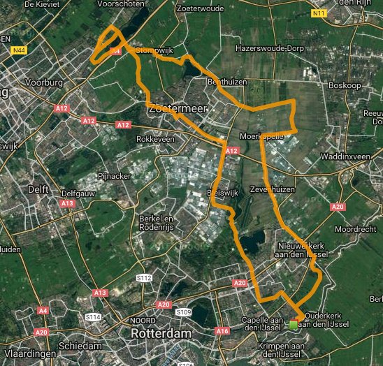 ik zie dat ik nu helemaal om Moerkapelle heen ben gereden. De vorige keer reed ik door Moerkapelle naar de A12 en reed dus parallel aan de A12 een stukje. Geen idee welke route het had moeten zijn maar dit was erg mooi