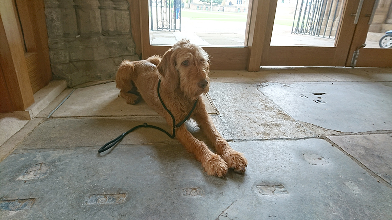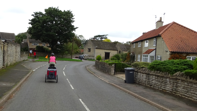 De weg loopt inmiddels een beetje omhoog en vlak voor Ryhall denk ik dat woefje wel heeeel nodig moet eten. Ik neem een afslag naar Tolethorpe Hall waar we even stoppen en woefje eten geven en een plasje laten doen. Goede smoes toch?