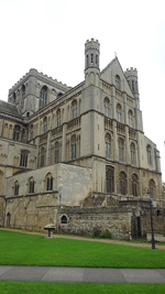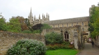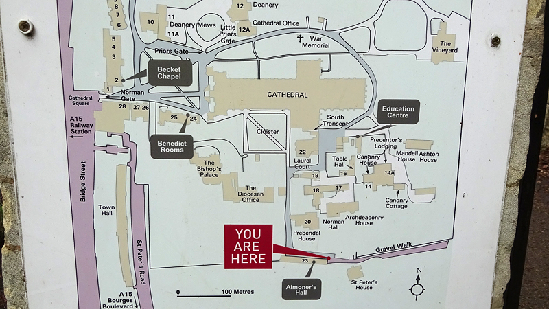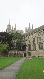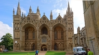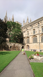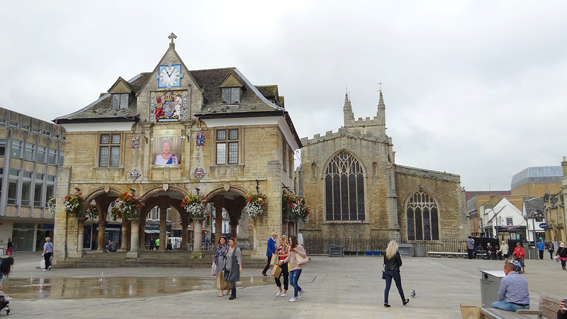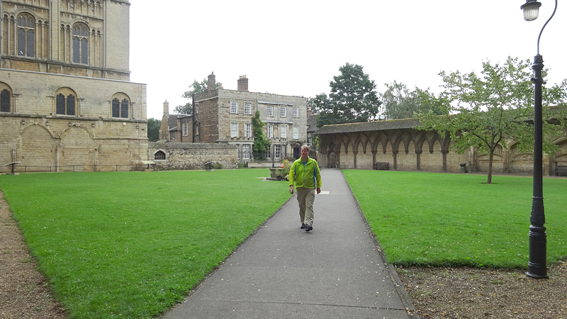 We willen eerst de Peterborough cathedral bekijken en als we de stad inrijden, komen we precies uit aan de goede kant. We zien de cathedral al en parkeren ergens op een terrein in de buurt. We laten de fietsen op de auto. Vreemd genoeg is het een long stay parking maar voor maximaal 24 uur en zelfs niet eens korter. Dat zijn de eerste 3 ponden die in de parkeermachine verdwijnen en we zullen later merken dat dit niet de laatste zijn ondanks onze goede voorbereiding….