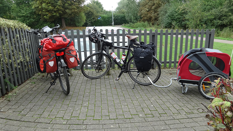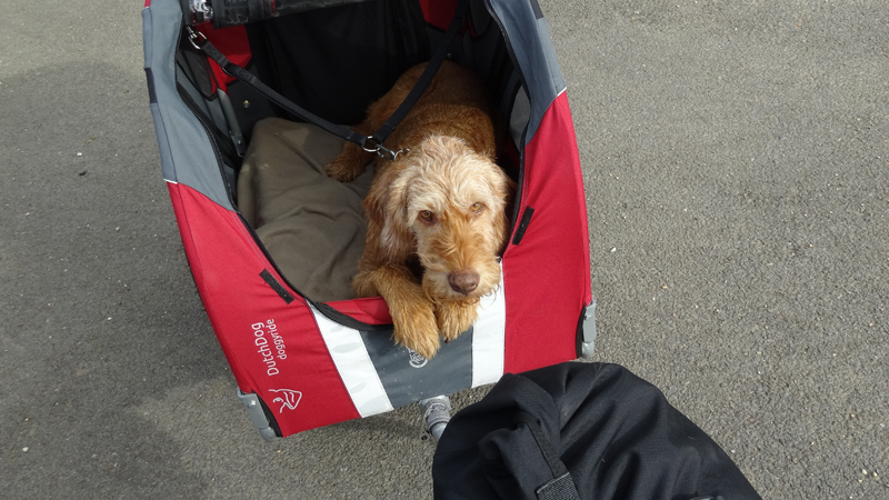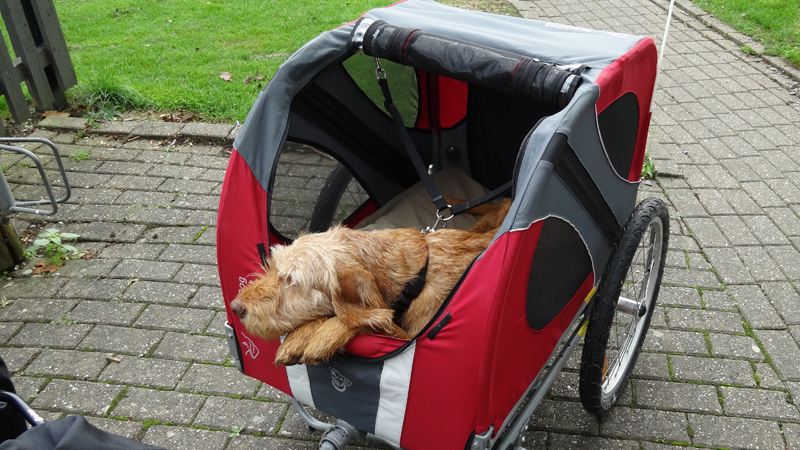 Vandaag dan de eerste dag van onze fietstocht rond Peterborough. Eigenlijk had ik gepland om de Lyndsey Trail te gaan fietsen tijdens ons verblijf maar om een of andere reden ben ik gaan twijfelen en maakte ik een andere route compleet met overnachtingsplek, mogelijkheden voor lunch (met woef) en avond eten. Dat kost allemaal tijd, want je moet soms dus ook wachten op antwoord over het al dan niet welkom zijn van woef etc. en als we uit eten willen in de avond, moet die plek niet al te ver van de campsite af liggen. Deze keer fiets ik met een nieuwe fiets en een nieuwe doggyride. Een lichtere doggyride met een beter systeem om de wielen eraf te halen. Bovendien kan de kar makkelijker open blijven en heeft woef dan een soort steuntje onder haar koppie. We dachten al de eerste keer dat we deze kar gekocht hadden maar we wisten er toen niet genoeg van. Nu dus een betere op de kop kunnen tikken. De Fuji heeft het eigenlijk een beetje begeven na de laatste fietstrip. Speling op de naaf, hoogte en breedte slag etc. Ook steigert de fiets nogal en dus werd het tijd voor een andere en kon ik een Santos demo overnemen voor een prima bedrag. Eens kijken war ons dat brengt nu!